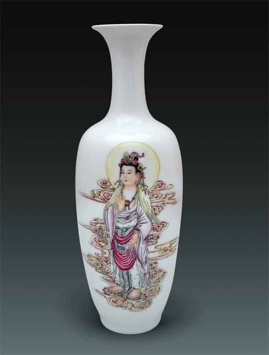 作品名稱:《站蓮觀音》瓶材 質(zhì):大球泥