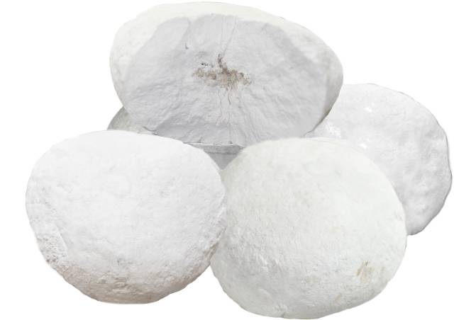 大球泥除了化學成分及物理性能和鉀長石、鈉長石有明顯的區(qū)別外,其外形也不盡相同。大球泥通體雪白耀眼且呈橢圓球狀,而鉀長石和鈉長石則是菱形或不規(guī)則的形狀。大球泥還有一個特點,剖開之后會清楚的看到雜質(zhì)全部集中在球核位置,其他位置同表面一樣雪白耀眼;但是,鉀長石和鈉長石整塊都有星星點點的雜質(zhì)。大球泥表面一摸就有細細的白色粉末,可以直接搽臉,很滑,輕輕一錘球體就散了;而鉀長石鈉長石是晶體狀,一錘下去還是不易碎。