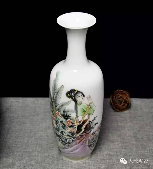 《如花似玉》柳葉瓶,以大球泥為主要材料,經1400°C高溫燒制而成。其瓶型設計精美、畫面端莊大方、瓷質致密不漏,是珍貴的陶瓷藝術品。《如花似玉》柳葉瓶,由高級工藝美術大師曾亞琴創(chuàng)作,器型撇口,短頸,豐肩,肩下削瘦至足,足內凹。瓶身挺拔秀美,通體素凈,雍容中不失典雅,其氣韻之美,代表了大球泥瓷的制瓷技藝。