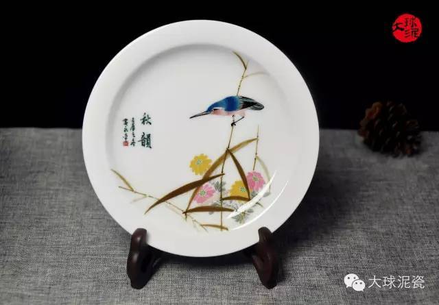 《四季》掛盤之《秋韻》作品,展現(xiàn)了煙波浩然的洞庭湖,一番秋色之景。而一只小巧玲瓏、色彩艷麗的翠鳥?吭谒叺奶J葦桿上,打破了這清晨的寧靜與尷尬。工藝美術大師通過這一主題表達了自己對深秋的看法,希望突破傳統(tǒng)繪畫技法的束縛,能夠有新的想象力與創(chuàng)新。在工藝美術大師的眼中,深秋的美不是蕭條的、遜色的,而是別有一番耐人尋味的體驗。這種美,卻只留給善于發(fā)現(xiàn)與挖掘的有心之人。