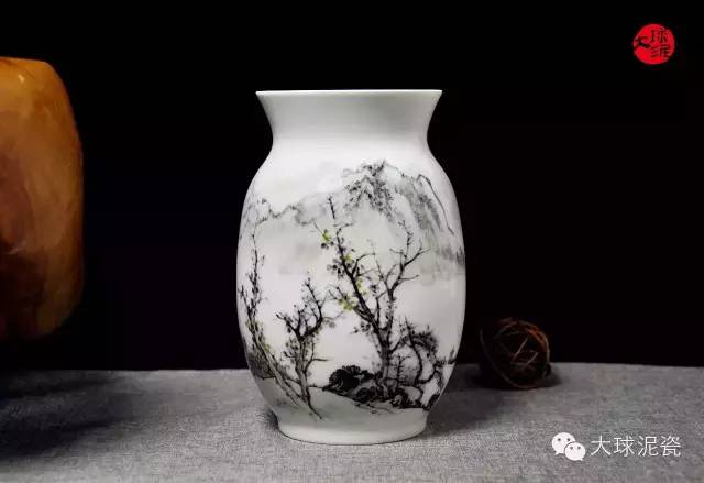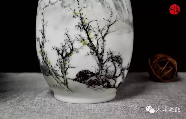 《江南春早》瓶,構(gòu)圖開闊,氣勢(shì)磅礴,韻律和諧,經(jīng)過高溫?zé)贫傻拇笄蚰啻筛菨嵃谉o瑕,晶瑩剔透,呈現(xiàn)出飽和富麗的色彩。