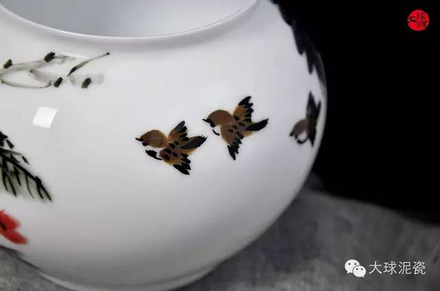 《壯志凌云》小瓷罐,以大球泥為原材料,以釉下五彩為工藝,采用手工拉坯,經(jīng)高溫1400攝氏度中燒制而成,色料充分滲透于坯釉之中,呈現(xiàn)出水潤光滑的視覺效果,清朗不渾,明凈素雅。