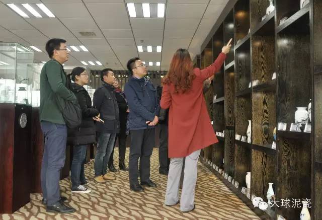 在副總張萍的陪同下,二十多位來(lái)自不同行業(yè)的精英們參觀了展廳的作品,并仔細(xì)詢問(wèn)了大球泥原料的形成、發(fā)現(xiàn)、開(kāi)采和利用。