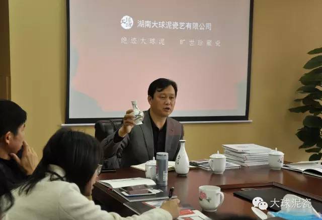 2015年11月9日上午,在國(guó)家文化部和湖南省文化廳統(tǒng)籌安排下,國(guó)家重點(diǎn)文化產(chǎn)業(yè)項(xiàng)目實(shí)施單位高層經(jīng)營(yíng)管理人員到湖南大球泥瓷藝有限公司進(jìn)行實(shí)地調(diào)研與項(xiàng)目交流。