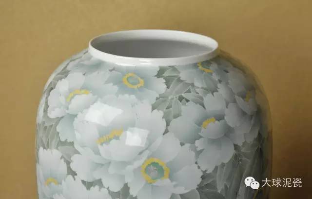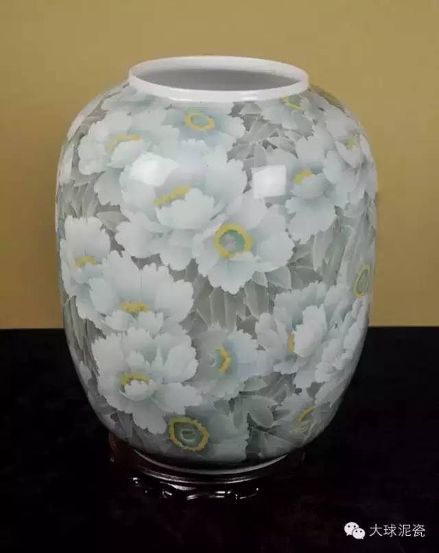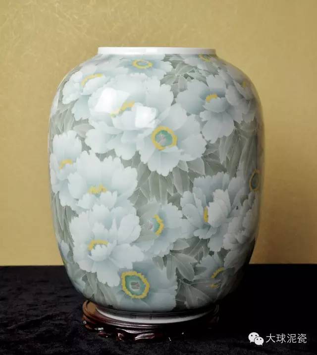 《牡丹》瓶是工藝美術(shù)大師陳楊龍先生(已故)于2006年親手繪制的作品。采用釉下五彩的工藝,器身勻稱,胎質(zhì)細(xì)膩,瓶身高40cm,收口鼓腹短足。瓶身通體繪滿牡丹,多層渲染,每一片花瓣都層次分明,清新欲滴,典雅秀麗,極富有主體感和層次感。區(qū)別于“醉顏紅”、“狀元紅”等紅色系牡丹,瓶上牡丹乃青白色花瓣,綴以淡黃花蕊,給人一種淡雅清逸、空靈雋秀的感覺。彰顯了薄如紙、白如玉、聲如磬、明如鏡的效果。與牡丹花語“生命、期待、淡淡的愛、用心付出”不謀而合,不愧是被稱為“禪在花草中”的名師佳作。