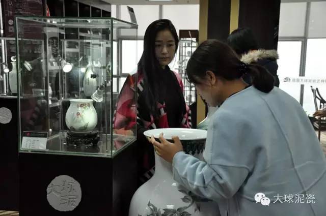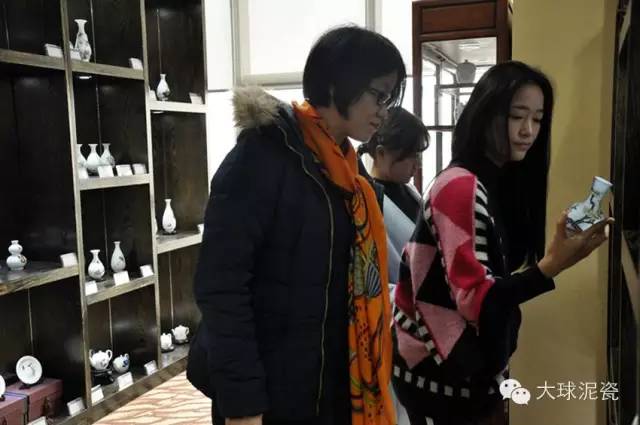 他們表示自己對大球泥瓷早有耳聞,但是從未見過真身,希望今日能夠一飽眼福。大球泥瓷藝工作人員便第一時間帶他們參觀了展廳里的展品。仔細(xì)地觀察了每一件藝術(shù)品后,大家各抒己見,表達(dá)了自己對大球泥瓷的看法。林主播說,相較于其他普通的瓷器,大球泥瓷的確與眾不同,用手摸起來光滑如玉,十分通透,毫無瑕疵,不愧是藝術(shù)瓷的代表。