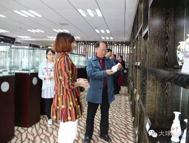 2016年4月12日,中共湖南省委宣傳部副部長、省文化產(chǎn)業(yè)領(lǐng)導(dǎo)小組主任楊金鳶一行六人到湖南大球泥瓷有限公司現(xiàn)場調(diào)研。隨行的領(lǐng)導(dǎo)還有省文產(chǎn)辦主任陽芳菲、省文產(chǎn)辦副主任胡革平、《新湘評論》雜志社副社長胡建軍、副社長劉少生等。