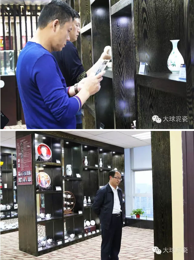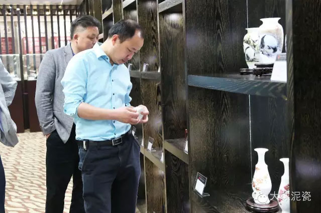 在看到展廳內陳列的熠熠生輝的大球泥瓷后,領導們紛紛興致勃勃地拿起手機拍照,更表示大球泥瓷使他們見過的最溫潤通透的瓷器,這么精美如畫的瓷器讓他們愛不釋手,流連忘返,決不能獨享,要讓大家都來一堵中國本土藝術陶瓷的風采,不能提起陶瓷就是皇家道爾頓,要讓家鄉(xiāng)的人民都為懷化出了個大球泥而感到驕傲。