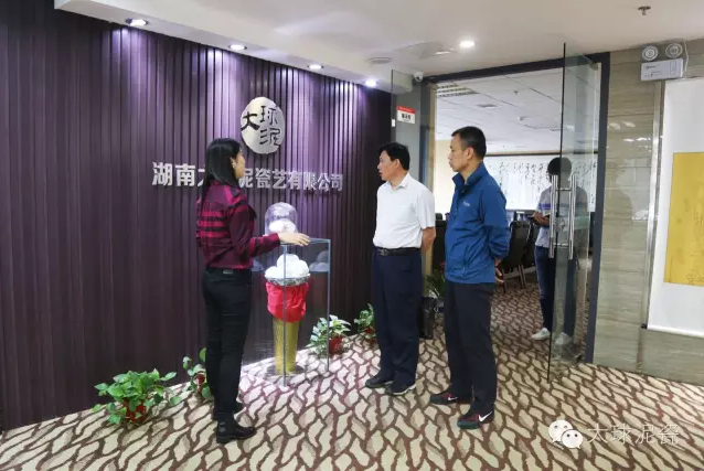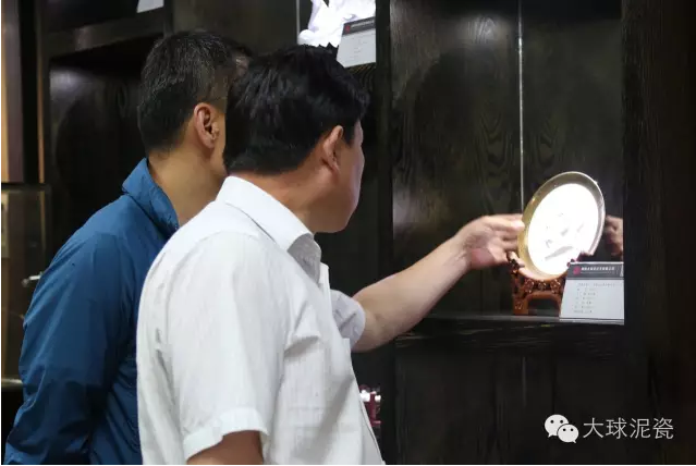 在公司工作人員陪同下,甘處長(zhǎng)一行首先參觀了大球泥瓷精品展示廳,并詢問(wèn)了大球泥原料的形成、發(fā)現(xiàn)、存量及大球泥瓷的特點(diǎn),對(duì)于大球泥瓷經(jīng)典作品做了仔細(xì)鑒賞。他建議,這么珍貴的作品,每一件都要做好版權(quán)登記,取得保護(hù),防止別人來(lái)仿冒、假冒大球泥作品。