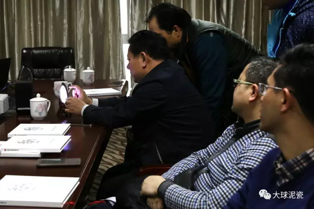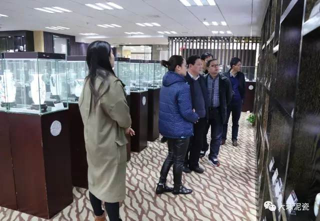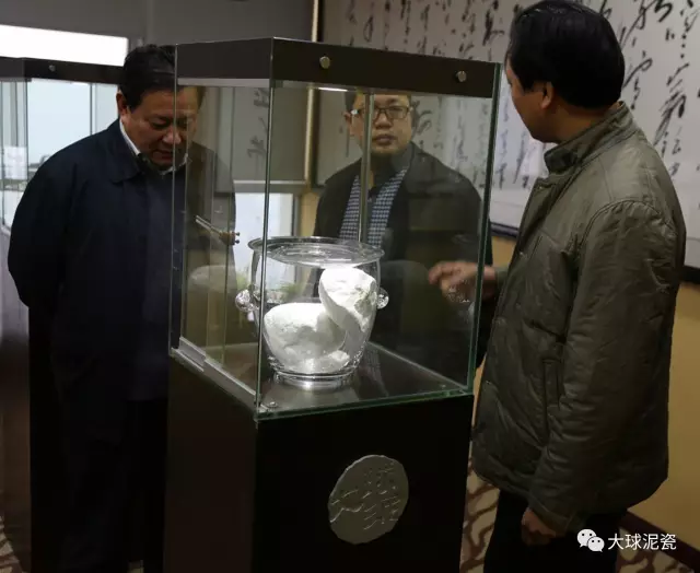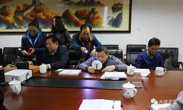 鄢副廳長(zhǎng)一行風(fēng)塵仆仆,興致勃勃,直接來到大球泥瓷展廳,仔細(xì)聽取了公司副總經(jīng)理張萍對(duì)大球泥原料的形成、發(fā)現(xiàn)、存量以及大球泥瓷各種器型、工藝、畫面特點(diǎn)的介紹,重點(diǎn)對(duì)近兩年來公司開發(fā)出的經(jīng)典瓷雕作品逐一進(jìn)行了解。在座談會(huì)上,公司董事長(zhǎng)滕召華從大球泥原料的搶救性保護(hù)、公司的成立、研發(fā)利用、知識(shí)產(chǎn)權(quán)保護(hù)、宣傳推廣、慈善文化以及嘗試開拓國(guó)際市場(chǎng),打造中國(guó)藝術(shù)陶瓷品牌等幾個(gè)方面做了詳實(shí)匯報(bào)。