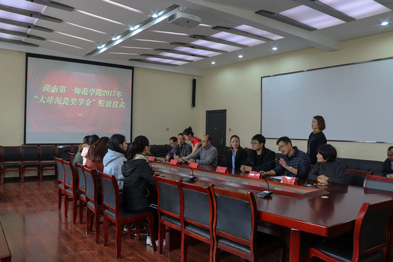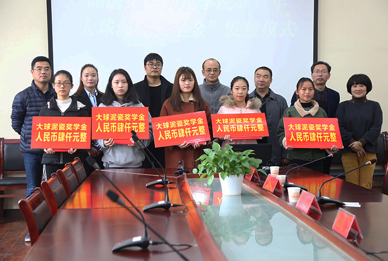 11月28日,大球泥瓷藝受邀參加湖南第一師范學(xué)院2017年“大球泥瓷獎(jiǎng)學(xué)金”發(fā)放儀式,常務(wù)副總張萍、副總楊振偉出席了此次活動(dòng)。