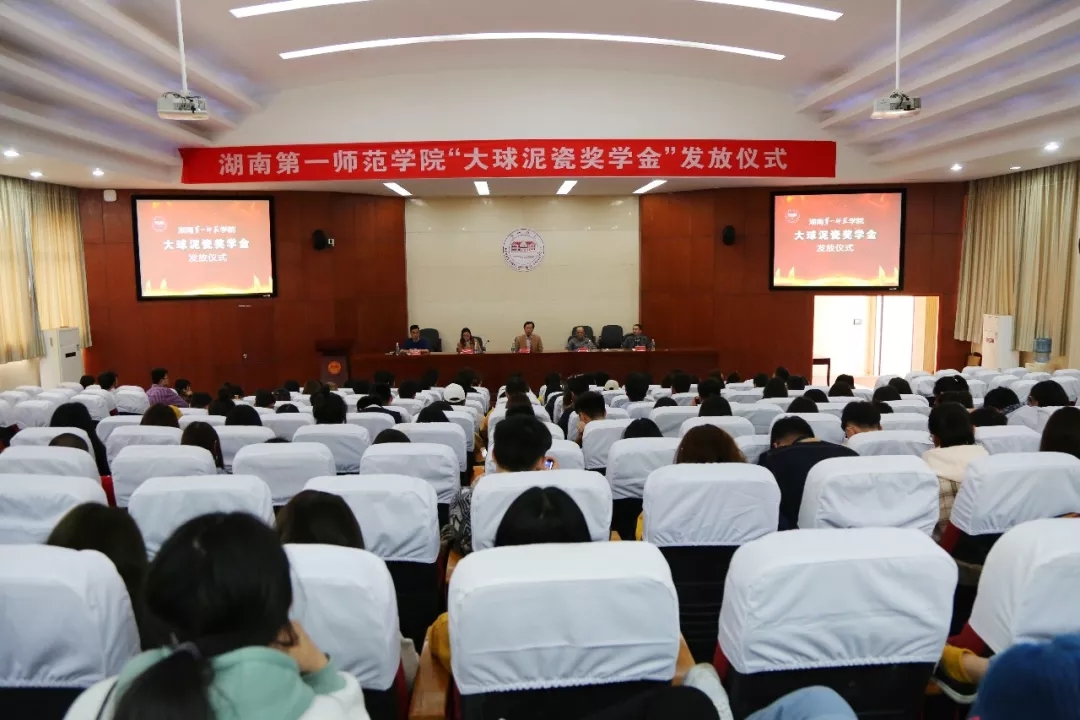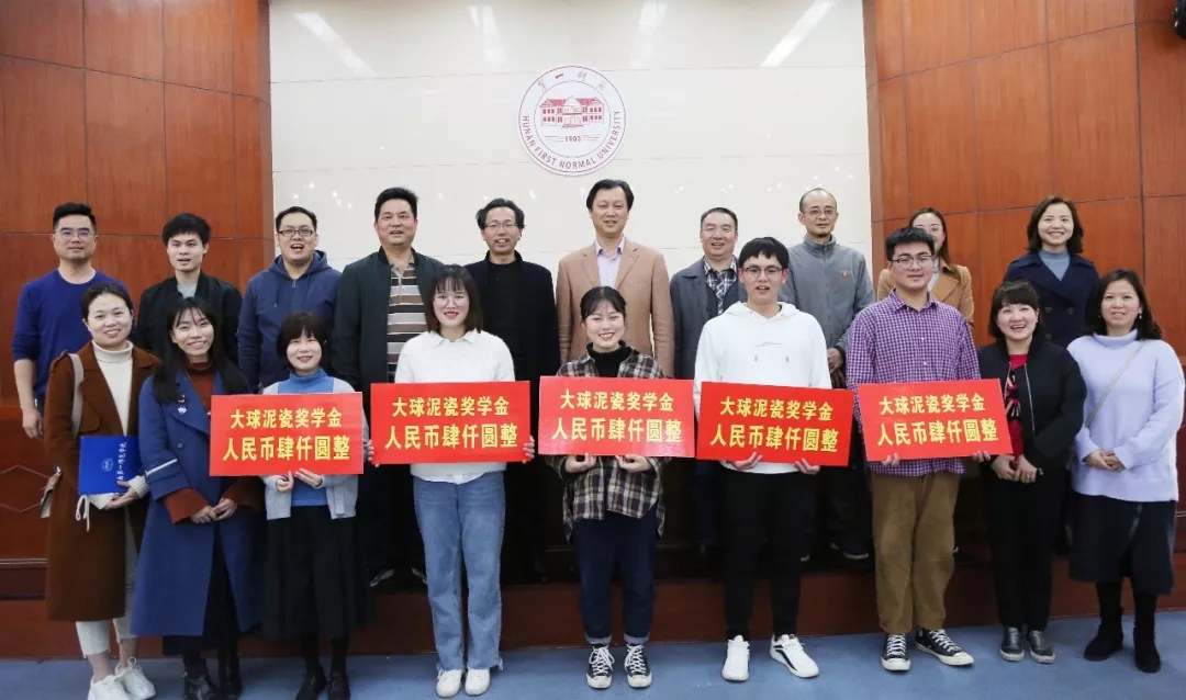 春暖花開,草長鶯飛。2019年3月19號(hào)下午,湖南第一師范“大球泥瓷獎(jiǎng)學(xué)金”頒獎(jiǎng)典禮在特立樓視頻會(huì)議室舉行。大球泥瓷藝董事長滕召華、常務(wù)副總張萍、營銷總監(jiān)徐亞美及部門經(jīng)理出席,第一師范美術(shù)與設(shè)計(jì)學(xué)院院長范迎春、書記蘇美華率領(lǐng)兩百余名學(xué)生出席了頒獎(jiǎng)儀式。