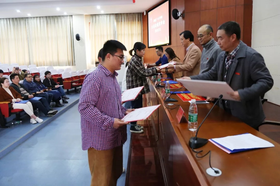 蘇美華書記宣讀“大球泥瓷獎(jiǎng)學(xué)金”表彰決定及獲獎(jiǎng)學(xué)生名單。滕召華董事長與學(xué)院領(lǐng)導(dǎo)向肖紫嫣等五位同學(xué)每人頒發(fā)獎(jiǎng)金和證書。