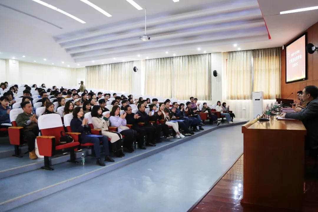 莊嚴(yán)的國歌拉開了頒獎(jiǎng)典禮的序幕。“愛心寄學(xué)子,濃情滿校園”,范迎春院長代表學(xué)校致辭,由衷地感謝大球泥瓷藝的愛心之舉,在兩年前捐贈(zèng)首批10萬元人民幣設(shè)立的專項(xiàng)獎(jiǎng)學(xué)金,贊譽(yù)了滕董是一個(gè)有責(zé)任、有擔(dān)當(dāng)、有大愛的企業(yè)家。他說:“滕董對(duì)毛主席母校的深切關(guān)愛,對(duì)莘莘學(xué)子的殷切期望令人感動(dòng),學(xué)校也將不負(fù)期望,為社會(huì)培養(yǎng)輸送更多優(yōu)秀人才。”