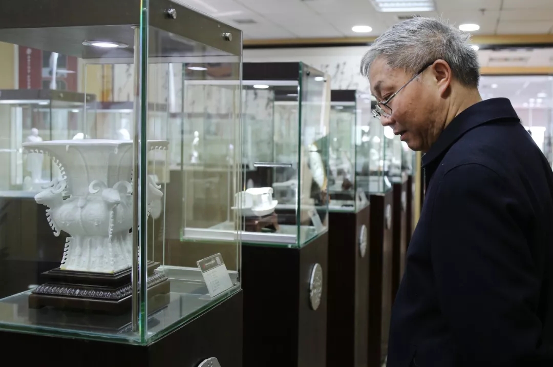 學(xué)員們紛至沓入大球泥瓷藝精品展示廳,面對一件件精美絕倫的陶瓷藝術(shù)作品驚嘆不已。他們或仔細(xì)端詳,或上手感知,或拍照留念,根本沒有隨著講解員方向移步,都在自顧不暇找亮點、拍照片、作交流。有人被大球泥原料所吸引,贊嘆大自然的鬼斧神工;有人被大球泥作品所癡迷,驚嘆工匠們的技藝精湛;還有人對大球泥瓷的燒制工藝產(chǎn)生了強烈的好奇心,說有機會一定要去醴陵工廠體驗過程。