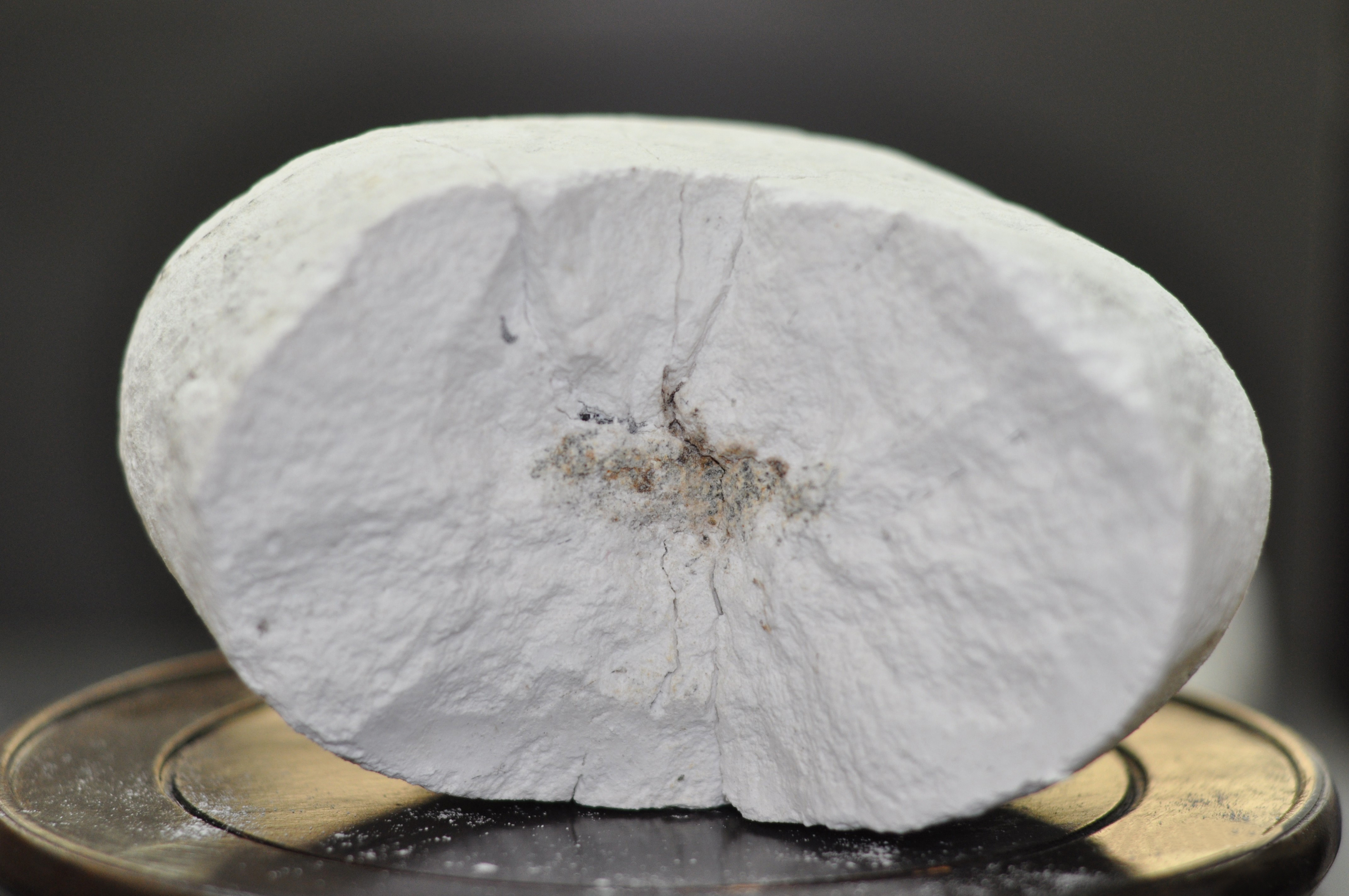 見(jiàn)過(guò)大球泥的人都會(huì)問(wèn),這種雪白球狀的礦物質(zhì)是天然形成的還是后天制作成球狀的?答案肯定是天然形成的。因?yàn)槊恳慧缰虚g都有一個(gè)核,是氧化鐵、氧化錳、電氣石等雜質(zhì)。當(dāng)今也有人把鉀長(zhǎng)石、鈉長(zhǎng)石冒充大球泥這種原料,但它是堅(jiān)硬的帶棱角,也不是自然球體狀。真正的大球泥是已經(jīng)風(fēng)化了的球形狀,砸開(kāi)后結(jié)構(gòu)致密、成小塊狀、一捏成粉。也有人做假將瓷泥揉成球狀,人工合成的沒(méi)有分明層次,輕輕一捏就散了。要辨別是不是做假合成或是長(zhǎng)石礦石,拿實(shí)物敲散驗(yàn)證一下就知道了。