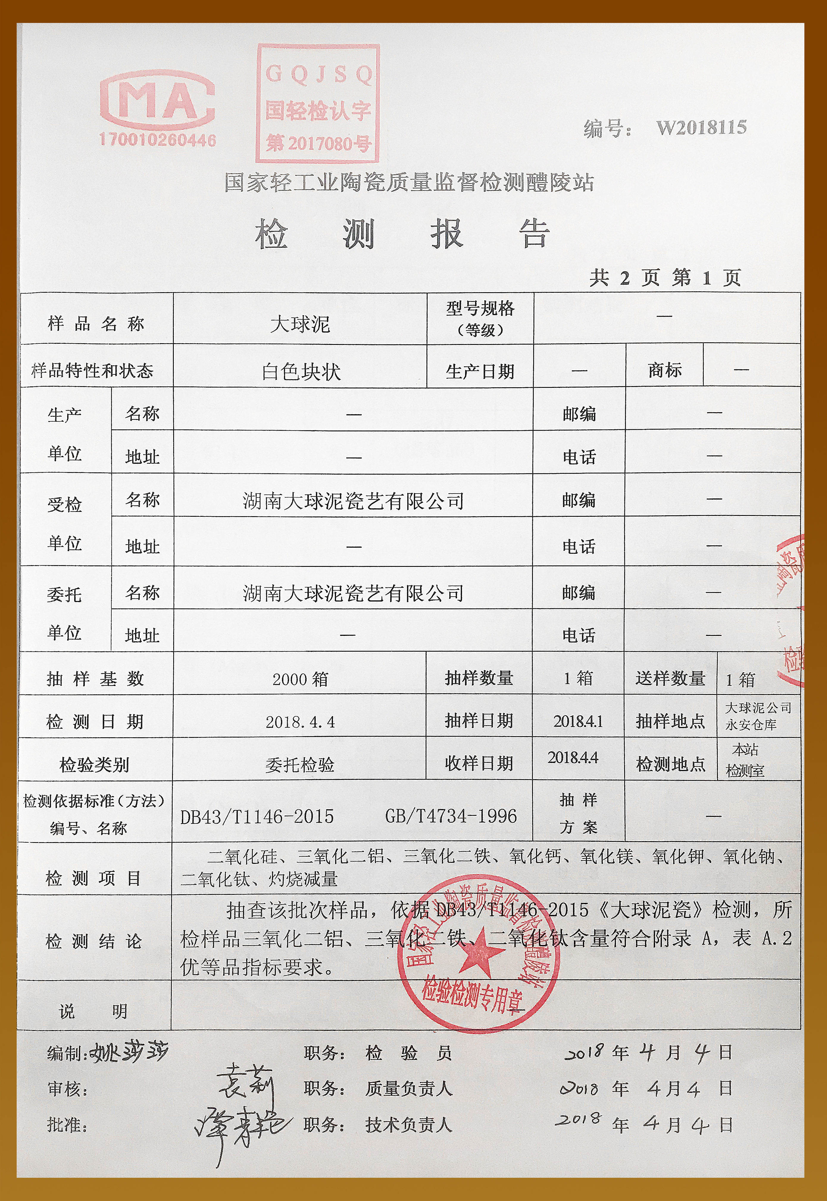 當前位置:大球泥首頁 > 大球泥原料 > 檢測報告