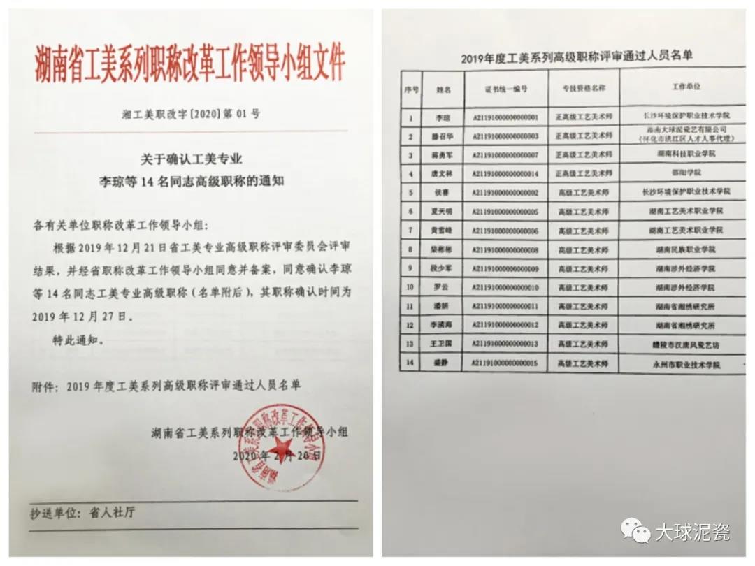 日前,從省職改領導小組獲悉,公司董事長滕召華獲評2019年正高級工藝美術師職稱,這是他近兩年獲評湖南省雙創(chuàng)入庫專家、湖南大學碩士生導師之后的又一殊榮。