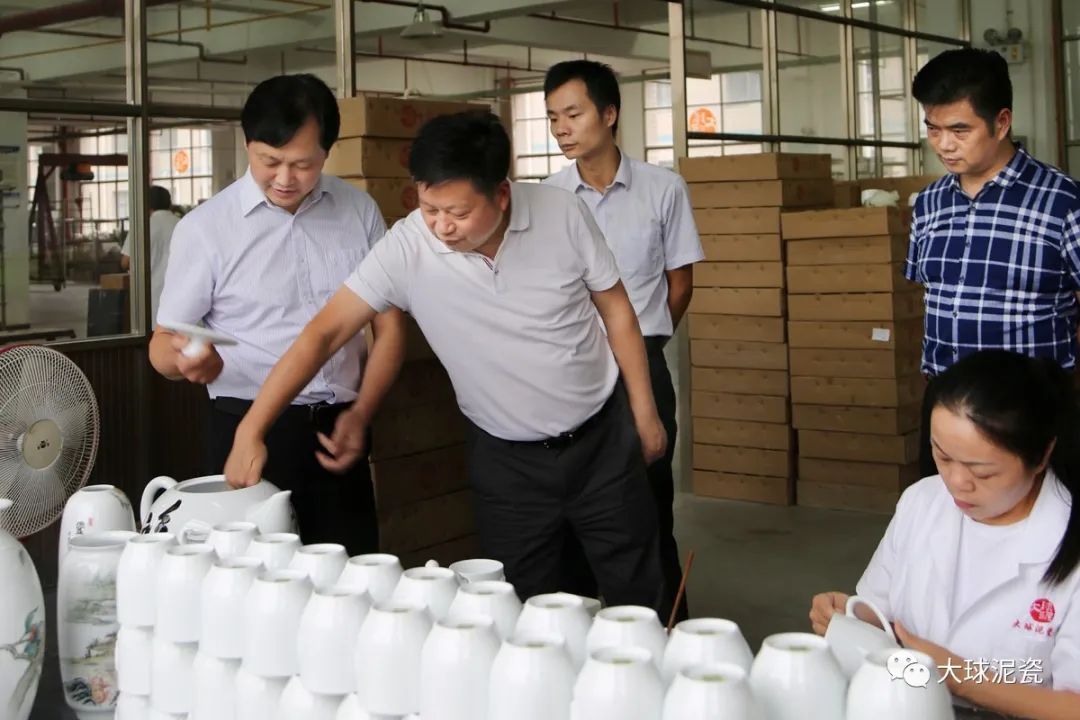 總公司董事長(zhǎng)滕召華、副總經(jīng)理姚衛(wèi)陪同參觀了生產(chǎn)車間。從彩繪創(chuàng)作室到雕刻工作室,從配方練泥區(qū)到制模成型區(qū),從拉坯修型崗到洗水噴釉崗,從裝窯燒窯位到檢瓷入庫(kù)位,聶局一行認(rèn)真觀瞻陶瓷制作的各道工序,仔細(xì)聽(tīng)取每個(gè)工匠講解的技術(shù)要領(lǐng),收獲頗豐。