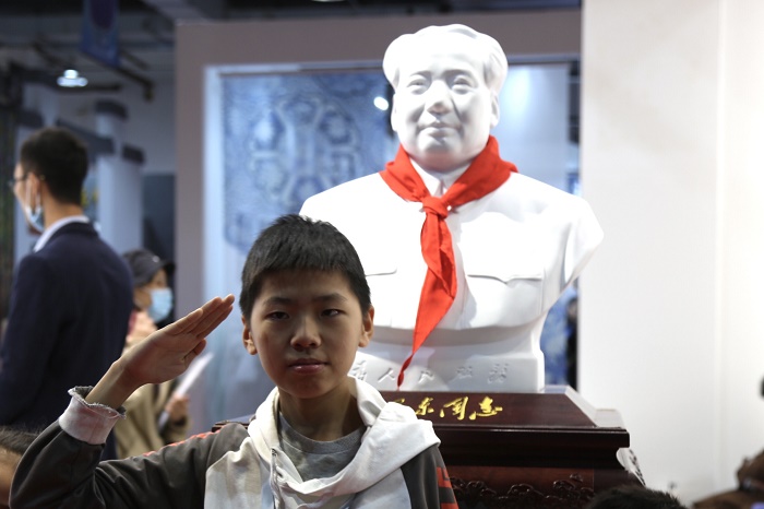 “來來來,給我與主席拍個(gè)照”。在毛澤東主席瓷像前總是排著隊(duì),這些五六十年代的人,從出生時(shí)就飽含對主席的深情。也有很多新生代,對主席十分敬仰。