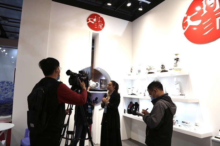 大球泥瓷藝展館的獨(dú)有特性,還獲得一眾媒體記者、網(wǎng)紅大咖的青睞,對大球泥重點(diǎn)推介與現(xiàn)場報(bào)道層出不窮,更有許多業(yè)內(nèi)專家前來學(xué)習(xí)交流,可謂人氣”爆棚“!