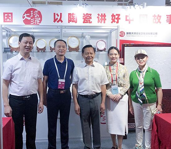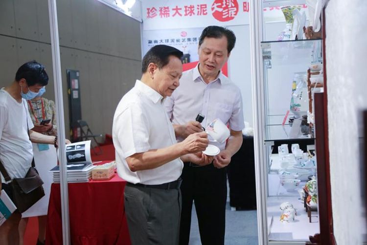 中國(guó)輕工業(yè)聯(lián)合會(huì)會(huì)長(zhǎng)張崇和到大球泥瓷藝展示區(qū)巡視時(shí),給予了大球泥作品以高度評(píng)價(jià):大球泥制定標(biāo)準(zhǔn)、材料稀缺、創(chuàng)新工藝、品質(zhì)優(yōu)越、自創(chuàng)品牌,起到了行業(yè)標(biāo)桿作用!