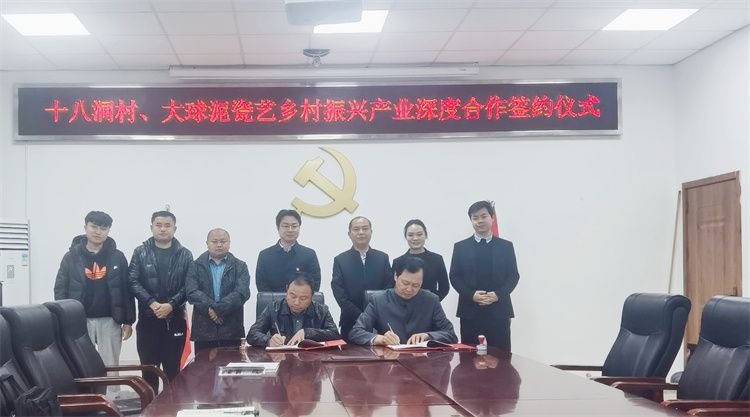 3月17日上午,大球泥瓷藝與十八洞村就鄉(xiāng)村振興產(chǎn)業(yè)深度合作在花垣縣十八洞村部簽約。 第二十屆中央候補(bǔ)委員、花垣縣雙龍鎮(zhèn)副鎮(zhèn)長(zhǎng)、十八洞村黨支部書記施金通,十八洞村駐村第一書記、鄉(xiāng)村振興工作隊(duì)隊(duì)長(zhǎng)田曉,十八洞村經(jīng)濟(jì)合作社理事長(zhǎng)龍書優(yōu),公司董事長(zhǎng)滕召華、副總經(jīng)理姚衛(wèi)、銷售經(jīng)理吳大樑等出席簽約儀式。